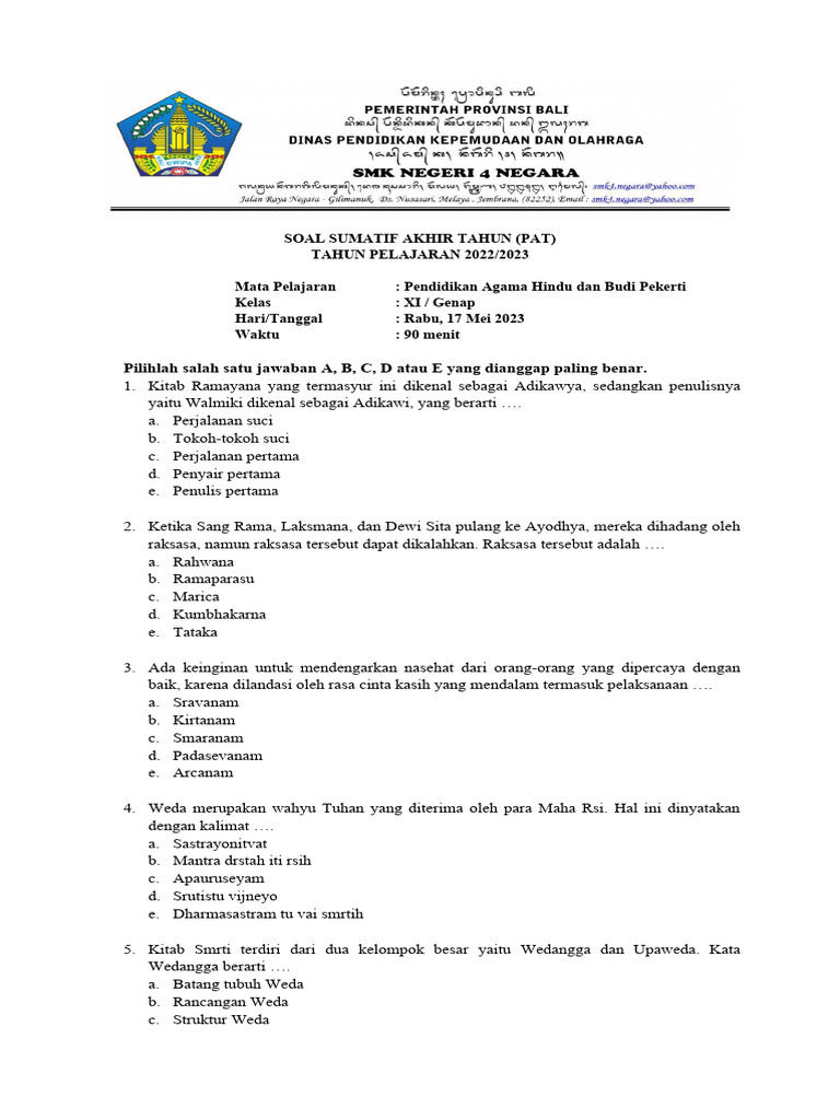Agama Hindu sebagai salah satu agama tertua di dunia memiliki kekayaan ajaran yang luas dan mendalam. Pemahaman yang komprehensif terhadap ajaran tersebut sangat penting, terutama bagi siswa kelas 11 yang berada pada tahap perkembangan intelektual yang signifikan. Semester 2 kelas 11 biasanya mencakup materi yang lebih kompleks dan aplikatif dibandingkan semester sebelumnya. Oleh karena itu, penyediaan bank soal yang komprehensif dan terstruktur menjadi sangat krusial untuk membantu siswa mengukur pemahaman mereka dan mempersiapkan diri menghadapi ujian. Bank soal ini dirancang untuk mencakup berbagai aspek materi Agama Hindu kelas 11 semester 2, dengan tipe soal yang bervariasi untuk menguji kemampuan kognitif siswa secara menyeluruh.