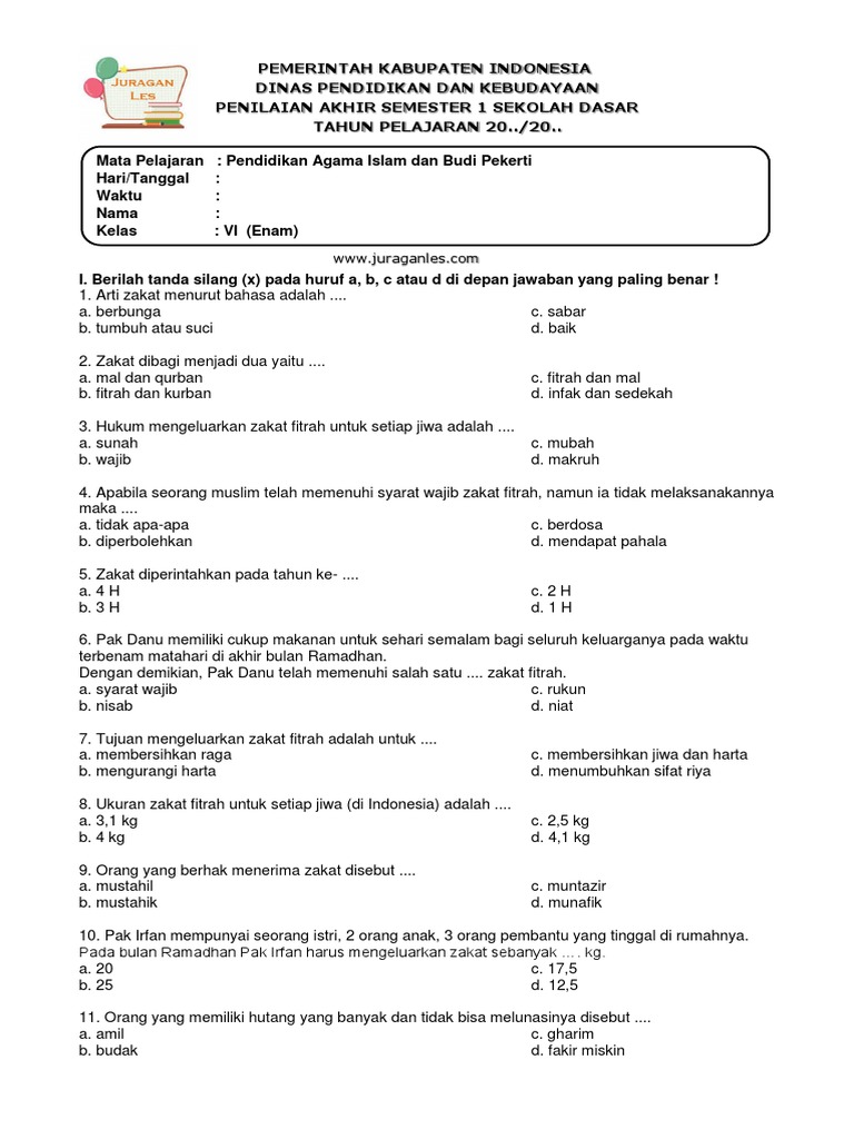 Ujian Tengah Semester (UTS) merupakan salah satu evaluasi penting dalam proses pembelajaran. Bagi siswa kelas 6 Madrasah Ibtidaiyah/Sekolah Dasar (MI/SD) tahun ajaran 2017 semester 1, UTS Agama Islam tentu menjadi momen krusial untuk mengukur pemahaman mereka terhadap materi yang telah diajarkan selama beberapa bulan pertama. Artikel ini akan membahas secara rinci kemungkinan soal-soal yang dapat muncul dalam UTS Agama Islam kelas 6 semester 1 tahun 2017, mencakup berbagai aspek materi yang biasanya diajarkan pada jenjang tersebut. Tujuannya adalah untuk memberikan gambaran umum dan membantu siswa dalam mempersiapkan diri menghadapi ujian dengan lebih baik. Meskipun soal-soal UTS dapat bervariasi antar sekolah dan guru, artikel ini akan mencoba mencakup materi-materi inti yang umumnya dipelajari.